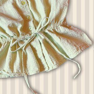 Textured cotton blend with a flattering cinched waist + tie detail — lightweight and perfect for warm days or layering under cardigans.