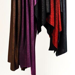 This maxi skirt from Christopher Kane's 2017 Autumn and Winter runway collection is crafted in a thick iridescent ribbed knit on the body, and features an elasticized waistband, a fitted silhouette through the knee; curved colourblock panels on the asymmetric hem in hues of red, purple, bronze, and navy; and an invisible side zip closure.