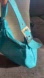 Chic aqua leather bag with a bold metallic buckle. Ideal for a stylish accent.
