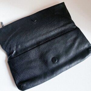 Christopher Kon Black Leather Convertible Fold Over Zip Detail Clutch