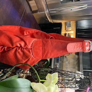 Canadian handbag designer Christopher Kon - 100% Genuine Leather Hobo Satchel. In brand new excellent condition with storage dust bag. Burnt Orange leather with silver hardware. Interior is a lightweight denim material. Lightweight show stopper bag. Strap is adjustable however not for x-body.