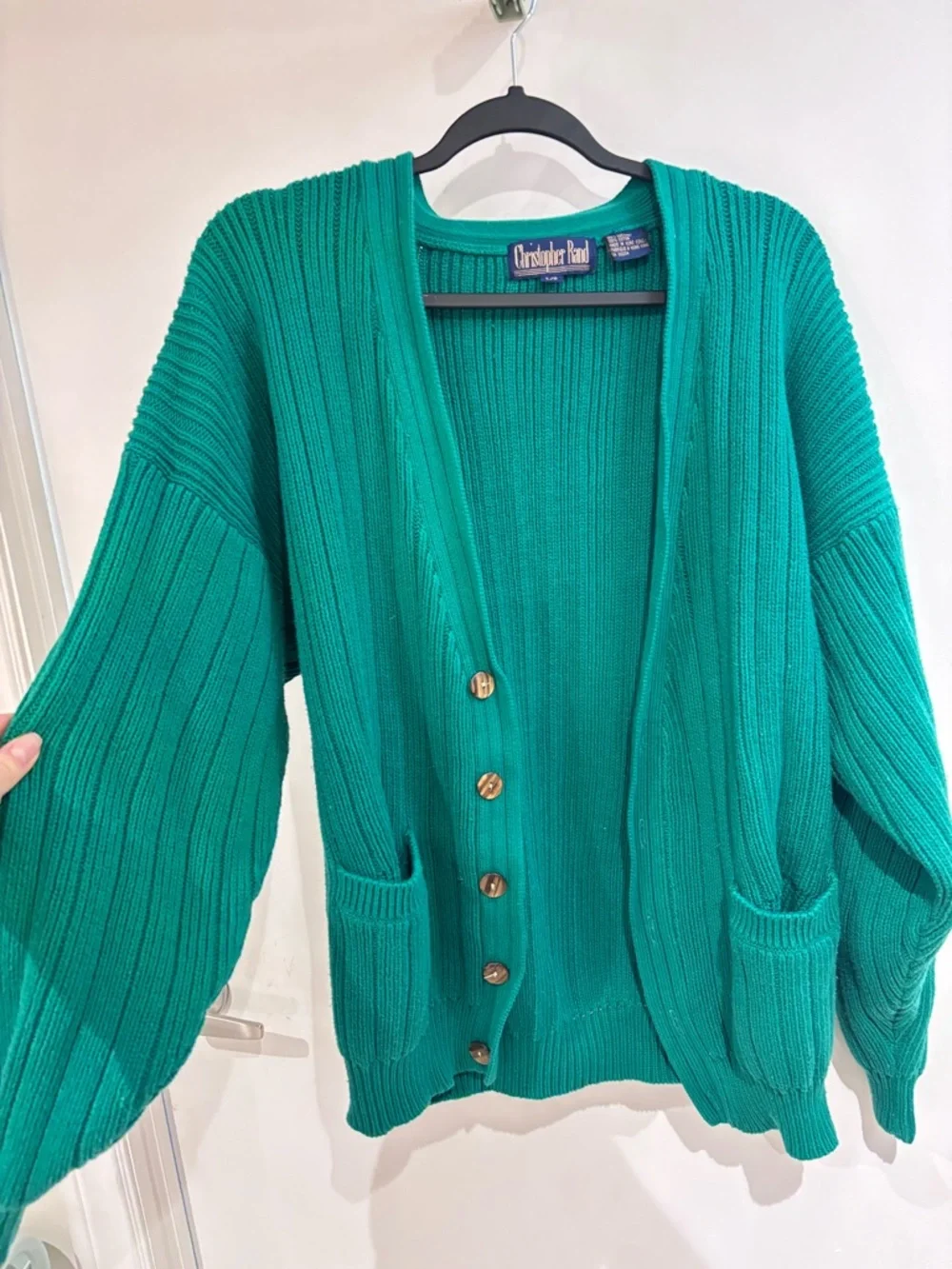 Christopher Radko Teal Ribbed Button-Front Cardigan