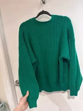 Chunky ribbed knit cardigan with a relaxed silhouette. Features button-front closure and two front pockets. Long sleeves with dropped shoulders for casual comfort.