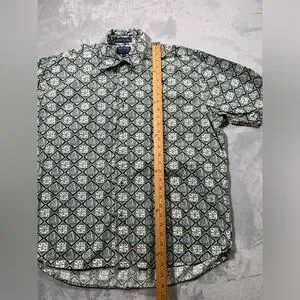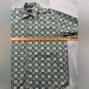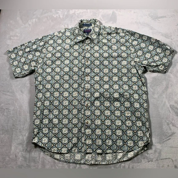 Stylish geometric patterned shirt with a blend of colors. Perfect for casual outings.