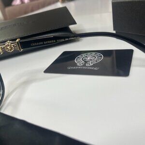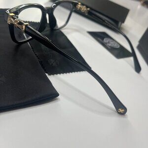 Chrome Hearts Black Glasses – Rectangular Unisex Frame with Gold Accents