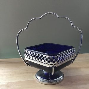 Chrome Plated Condiment Dish with Cobalt Blue Insert