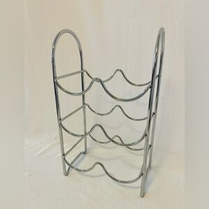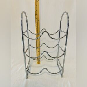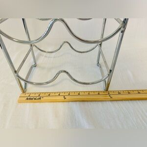 Sleek chrome wine rack with three tiers. Perfect for organizing bottles. Holds 6 bottles.