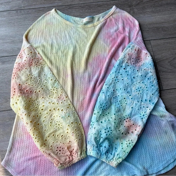 Chrysanthemum Oversized Balloon Sleeve Tie Dye Patchwork Knitted Top