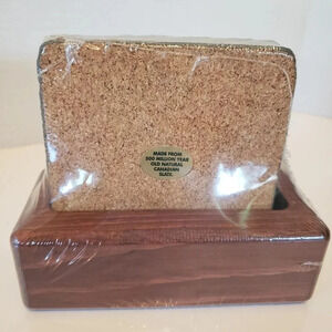 Chrysler Old Canadian gray slate coaster set with wooden stand.