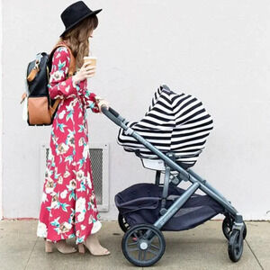When being used as a car seat cover, the cover has a universal fit and allows for secure handle access. It provides quick and easy shade, protection from the wind and privacy when you are on-the-go, but still lets you easily check on baby. This amazing cover also fits standard shopping carts to protect against germs while shopping.