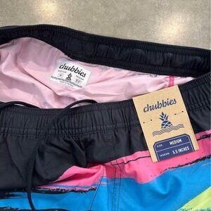 Chubbies Men's Black Swim Trunks with Blue and Pink Accents