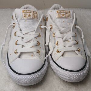 Chuck Taylor All Star Street Slip On Lace Up Gold Star Junior Shoes White Size 4