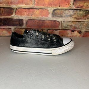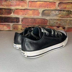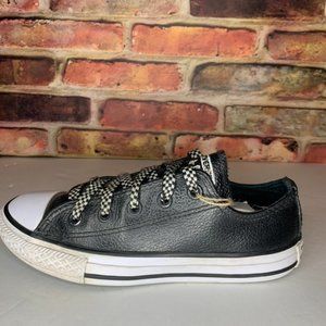 Chuck Taylor Black Leather Ox Lows w/white sole & toe cap - Kids 13