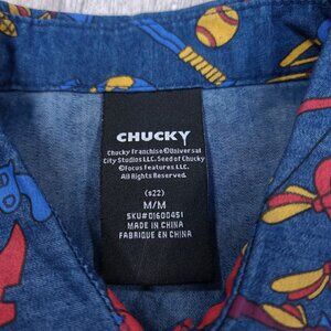 Chucky Mens Good Guys Button Shirt Size Medium Blue Horror Movie Short Sleeve