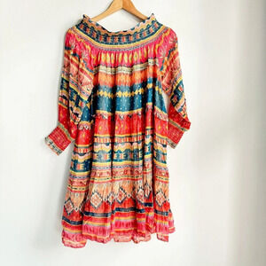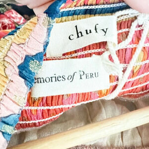 Chufy Memories of Peru Colourful Ethnic Print Off The Shooulder Chiffon Dress L