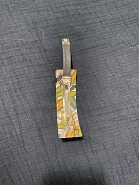 Colorful abstract resin french barrette by Chunks. Smooth curved design. Snap-clip closure. Eye-catching multicolor pattern for casual wear.
