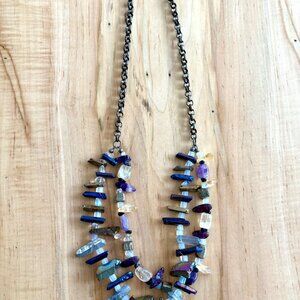 Chunky Aura Quartz Amethyst Pyrite Gemstone Statement Necklace