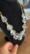 Unique piece with gorgeous large icy crystal beads. I don’t recognize the brand but there is a hallmark near the clasp. Gently used great condition.