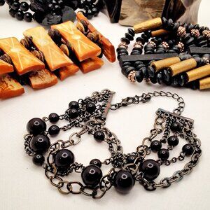 Chunky Bracelets Mixed Lot of 5: Cuff Boho Black Beads Navy & Gold Black Acrylic Brown Wood - Pre Owned