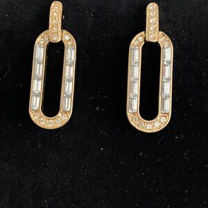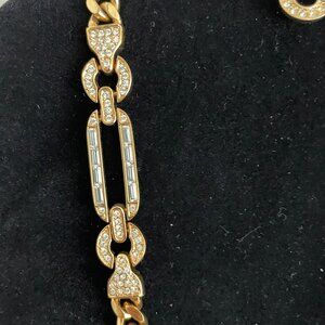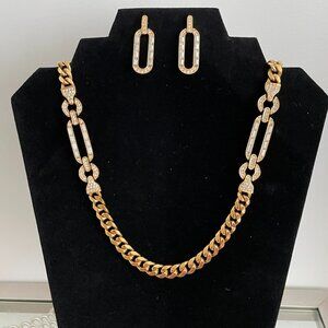 Chunky Gold and Rhinestone Necklace and Pierced Earring Set