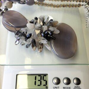 Chunky Grey Necklace, Smoky Grey Agate Inspired Fashion Shell Chips Necklace
