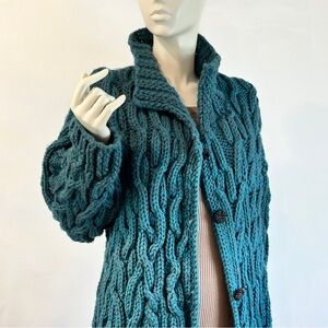 Gorgeous, soft and chunky cable knit cardigan in a deep forest teal.