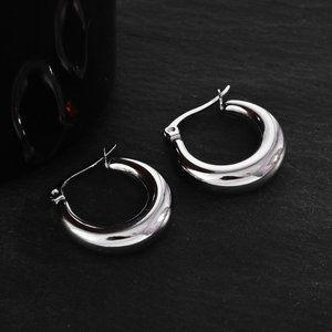 Chunky curved hoop earrings for work or play. Elegantly tapered, these earrings make a timeless and essential accessory.