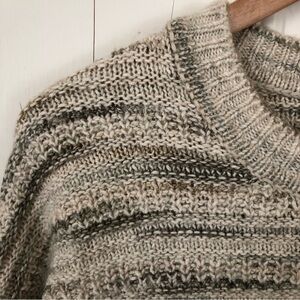 Chunky Knit Cotton Wool Blend Crew Neck Pullover Sweater Large
