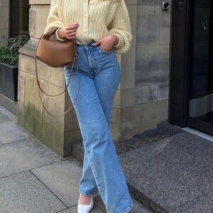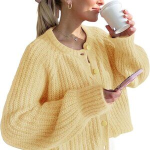 Chunky Knit Open Front Button Down Sweater with Crew Neck and Long Sleeves