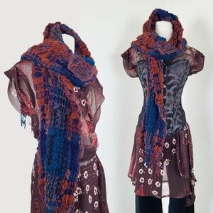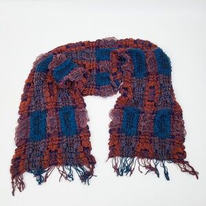 Chunky Knit Scarf Blue Navy Red Long Rectangular Large Oversized