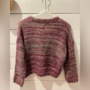 Soft and cozy chunky sweater in a beautiful multicolor knit—blends of berry, taupe, and cream tones. Featuring a flattering V-neckline, long sleeves, and relaxed fit. Perfect for layering on cooler days.