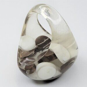 Chunky Oval Shape Resin Ring With Brown and White Pill Beads Lucite Large Ring