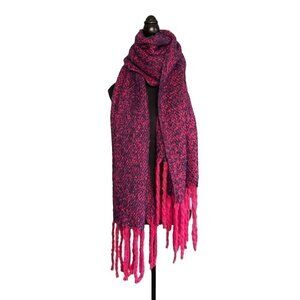 chunky knit scarf fall, pink purple scarf cozy, oversized fringe scarf, warm fall wrap shawl, acrylic winter blanket, bold knit scarf winter, soft knit scarf pink, pink chunky fringe scarf, long warm scarf women, speckled knit scarf gift, thick blanket scarf cozy, fall scarf oversized knit, women soft warm scarf