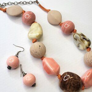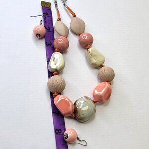 Peach and Pink Pastels Large Bead Bib Necklace with Earrings