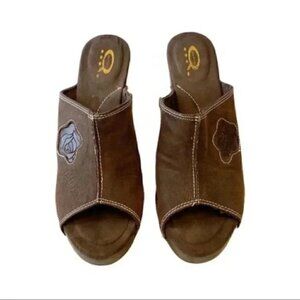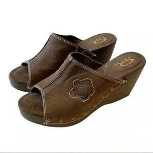 Quad Comfort Brown Wedge Slide Clog Sandals