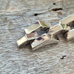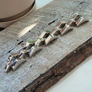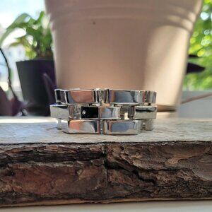 Transform your accessory collection with this striking Stella and Dot silver tone junky bracelet, a fun tribute to the lively spirit of the 90s. Crafted with a durable design and a reliable fold-over clasp, this eye-catching piece effortlessly adds a whimsical retro touch to any ensemble. Perfect for an evening out or simply to brighten your daily outfit, this bracelet is the ultimate accessory for those who dare to be different! Normal wear one small blemish, see photo.