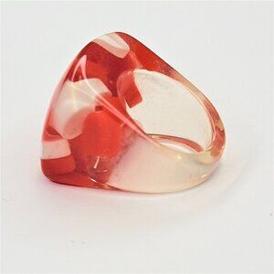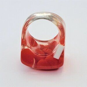 Chunky Square Resin Lucite Ring With Red And White Pill Beads See Through Ring