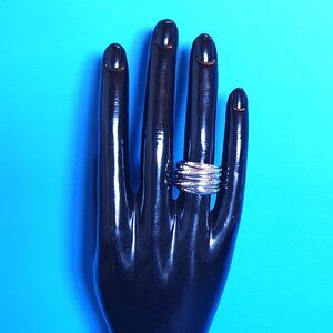 Chunky Vintage Sterling Silver Multi-Banded Interlocking Modernist Ring