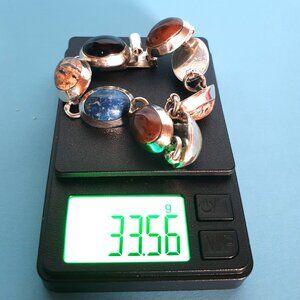 Chunky Vintage Taxco Mexico TH-75 Sterling Silver Multi-Gemstone Link Bracelet