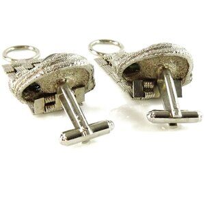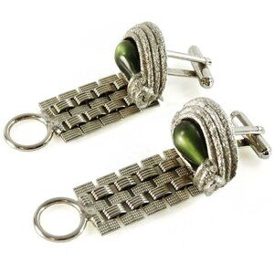 Chunky Vintage Wrap Around Mesh Cufflinks Silvertone Steampunk Green