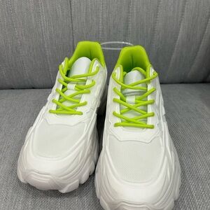 Chunky White Sneakers with Neon Green Accents 8.5 NWOT