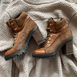 Absolutely gorgeous Guess leather booties (mix of suede and smooth leather). Worn only a handful of times and not for the last year. Well kept and clean. Add pizzazz to leather leggings, skinny jeans and skirts.