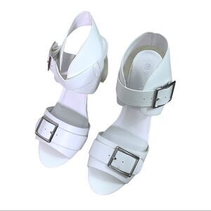 Chunky White Silver Metallic Heel Sandals