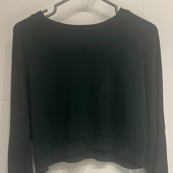 Chuu Cropped Long Sleeve Sweatshirt in Dark Green