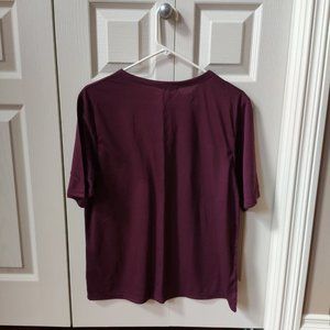 Description: comfy and casual t-shirt made of 65% polyester and 35% rayon. Drapes beautifully.