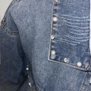 💙🩶 stunning chic timeless style oversized embellished faux diamonds jeans jacket EUC same day shipping from smoke free home