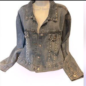 Ci Sono Wear What U 🩶💙luxury diamond stud denim jacket Sz XL