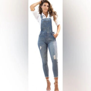 Ci Sono blue denim raw hem slim fit overalls Sz M