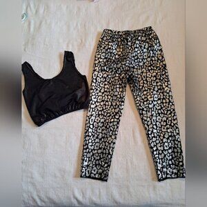Cicci girls Large 2 piece dance top & leggings black with silver animal print