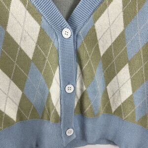 Cider Cropped Cardigan Argyle V-Neck Preppy Soft Girl Sweater